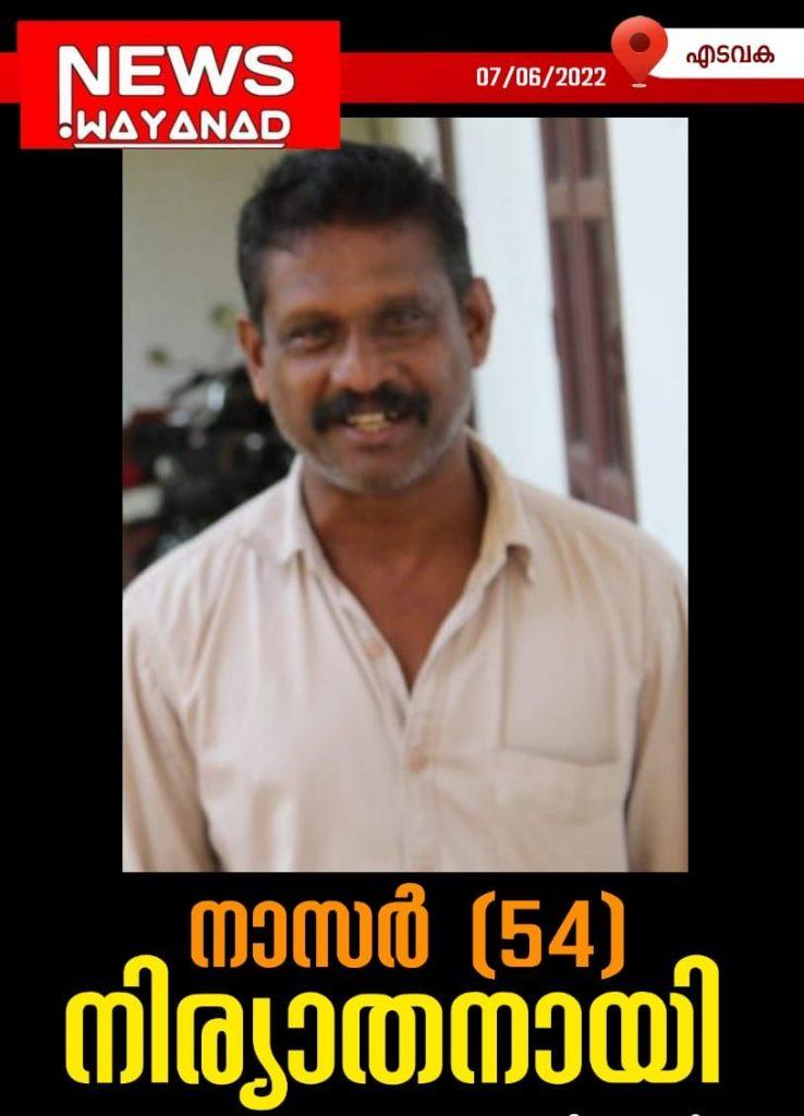 News Wayanad നാസര് (54) നിര്യാതനായി June 7, 2022 0 By ന്യൂസ് വയനാട് ബ്യൂറോ എടവക: എടവക കമ്മോം അണിയാപ്രന് നാസര് (54) നിര്യാതനായി. സിപിഐഎം കമ്മോം ബ്രാഞ്ച് അംഗമായ നാസര് സിപിഐഎം ജില്ലാ സെക്രട്ടറി ഗഗാറിന്റെ ഡ്രൈവറാണ്. ജില്ലാ ആശുപത്രിയിലെ മുന് ആംബുലന്സ് ഡ്രൈവറായിരുന്നു. ഭാര്യ:സക്കീന. മക്കള്: അജുമല്, അഷ്മില, അര്ഷിദ. Post navigation Previous: പരിസ്ഥിതി ദിനാഘോഷം സംഘടിപ്പിച്ചുNext: ഹോംസ്റ്റേയിൽ അതിക്രമിച്ച് കയറി യുവതിയെ കൂട്ടബലാത്സംഘം ചെയ്ത കേസിലെ രണ്ട് പ്രതികൾ പിടിയിലായി Also read News Wayanad പുലിപ്പേടിയിൽ ചീരാൽ; വളർത്തു മൃഗങ്ങളെ ആക്രമിച്ചു April 24, 2026 0 News Wayanad സെൻ്റ് ജോർജ് യാക്കോബായ സുറിയാനി പള്ളിയിൽ ഓർമ്മപെരുന്നാൾ സമാപിച്ചു April 24, 2026 0 News Wayanad പാമ്പുകടിയേറ്റ് സംസ്ഥാനത്ത് മരിച്ചത് നാല് പേർ; ജില്ലാ മെഡിക്കൽ ഓഫീസേഴ്സിന്റെ യോഗം വിളിച്ച് ആരോഗ്യവകുപ്പ് April 24, 2026 0 Leave a ReplyDefault Comments (0)Facebook Comments Leave a Reply Cancel replyYour email address will not be published. Required fields are marked *Comment * Name * Email * Website