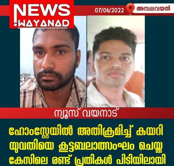 ഹോംസ്റ്റേയിൽ അതിക്രമിച്ച് കയറി യുവതിയെ കൂട്ടബലാത്സംഘം ചെയ്ത കേസിലെ രണ്ട് പ്രതികൾ പിടിയിലായി