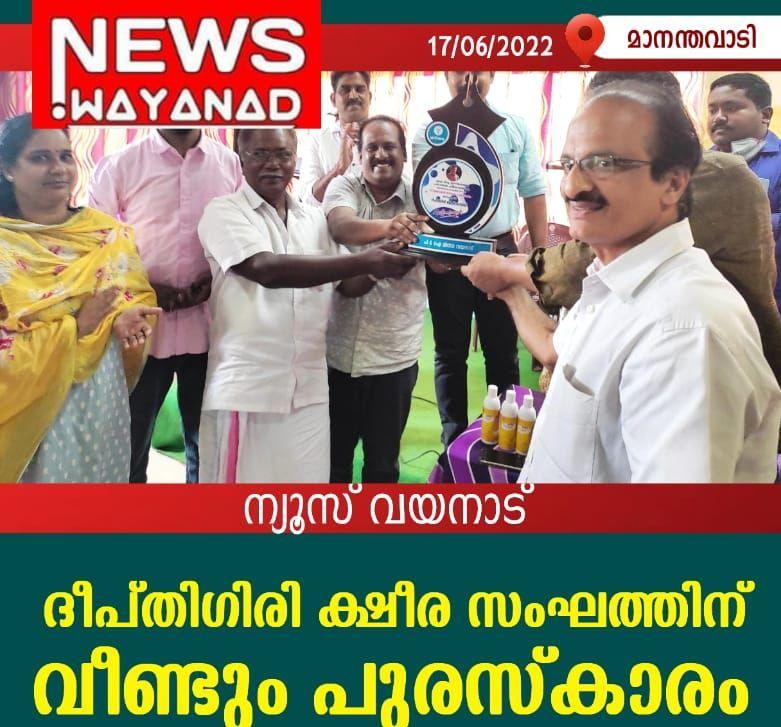 ദീപ്തിഗിരി ക്ഷീര സംഘത്തിന് വീണ്ടും പുരസ്കാരം