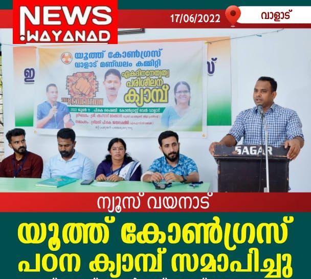 സമാപന സമ്മേളനം എ ഐ സി സി മെമ്പർ പി.കെ.ജയലക്ഷ്മി ഉൽഘാടനം ചെയ്തു.”യുവത്വം ലഹരിക്കെതിരെ”എന്ന കാമ്പയിന് ക്യാമ്പ് തുടക്കം കുറിച്ചു.വാളാട് മണ്ഡലത്തിലെ മുഴുവൻ കവലകളിലും,ടൗണുകളിലും,കോളനികളിലും കേന്ദ്രീകരിച്ച് ലഹരിക്കെതിരെ ബോധവൽക്കരണ ക്ലാസ്സ് സംഘടിപ്പിക്കാൻ ക്യാമ്പ് തീരുമാനിച്ചു.മണ്ഡലം പ്രസിഡൻ്റ് സുബിൻ ജോസ് അധ്യക്ഷത വഹിച്ചു.ഷാഫി പുൽപ്പാറ ക്ലാസുകൾക്ക് നേതൃത്വം നൽകി.