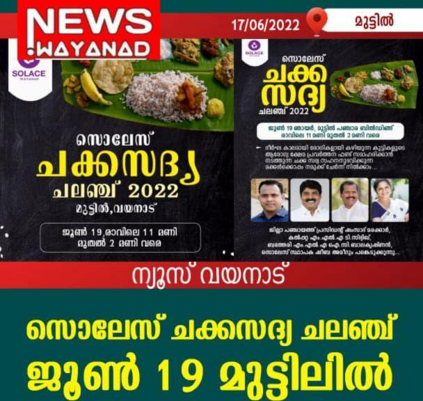 സൊലേസ് ചക്ക സദ്യ ചലഞ്ച് :ജൂൺ 19ന് മുട്ടിലിൽ
