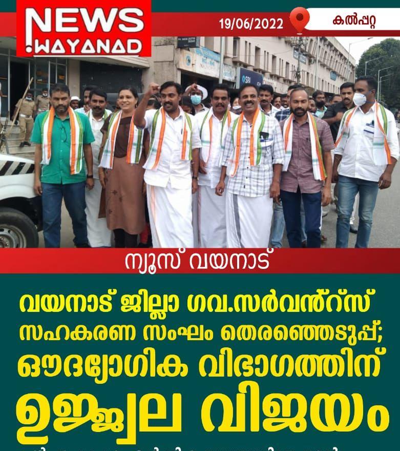 വയനാട് ജില്ലാ ഗവ. സർവൻ്റ്സ് സഹകരണ സംഘം തെരഞ്ഞെടുപ്പ്; ഔദ്യോഗിക വിഭാഗത്തിന് ഉജ്ജ്വല വിജയം
