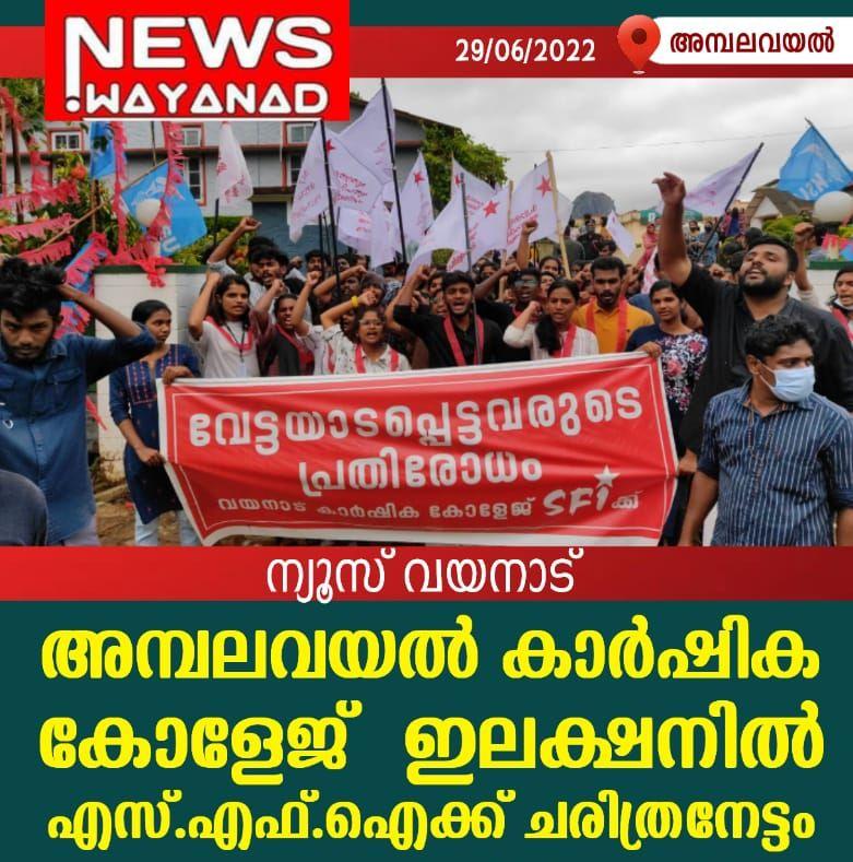 അമ്പലവയൽ കാർഷിക കോളേജ് ഇലക്ഷനിൽ എസ്.എഫ്.ഐക്ക് ചരിത്രനേട്ടം