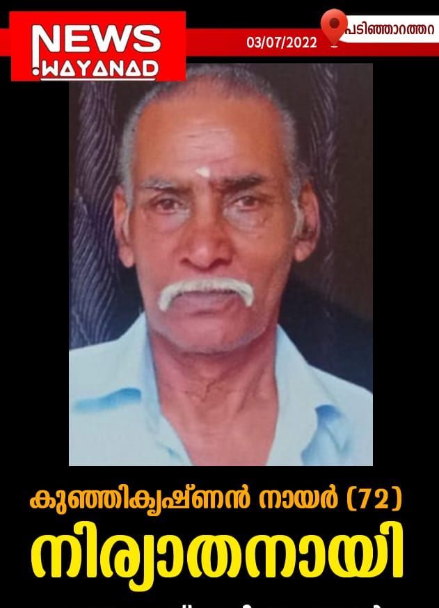News Wayanad കുഞ്ഞികൃഷ്ണൻ നായർ(72)നിര്യാതനായി July 3, 2022 0 By ന്യൂസ് വയനാട് ബ്യൂറോ അഞ്ച്കുന്ന് : അഞ്ചുകുന്ന് പുളിക്കം വയൽ കുഞ്ഞികൃഷ്ണൻ നായർ(72) നിര്യാതനായി. ഭാര്യ:പ്രേമലീല , മക്കൾ: സജിത്ത്, സന്ധ്യ. മരുമക്കൾ : റാണി, സുനിൽ. Post navigation Previous: മാനന്തവാടി നിയോജക മണ്ഡലം വൈറ്റ്ഗാർഡ് സംഗമം നടത്തിNext: എൽസി (74) നിര്യാതയായി Also read News Wayanad ‘രണ്ടുദിവസം കൂടി കഠിനമായ ചൂടുണ്ടാകും, പകൽ സമയത്ത് അനാവശ്യ യാത്രകൾ ഒഴിവാക്കണം’: മന്ത്രി കെ. രാജൻ April 25, 2026 0 News Wayanad ദേശീയ സൈക്കിൾ പോളോ താരങ്ങളെ ആദരിച്ചു April 25, 2026 0 News Wayanad വായനക്കളരി സംഘടിപ്പിച്ചു April 25, 2026 0 Leave a ReplyDefault Comments (0)Facebook Comments Leave a Reply Cancel replyYour email address will not be published. Required fields are marked *Comment * Name * Email * Website