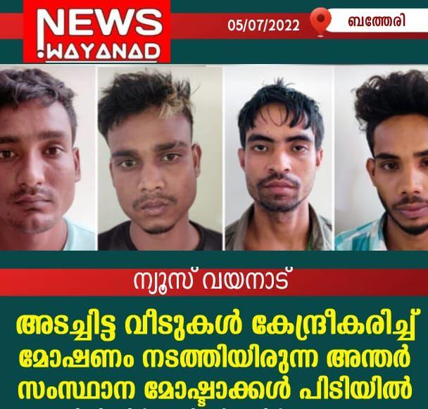ജില്ലയിൽ അടച്ചിട്ട വീടുകൾ കേന്ദ്രീകരിച്ച് മോഷണം നടത്തിയിരുന്ന ഈ സംഘം പോലീസ് നിരീക്ഷണത്തിലായിരുന്നു.പുൽപ്പള്ളി,നൂൽപ്പുഴ പോലീസ് സ്റ്റേഷൻ പരിധിയിൽ ഇക്കഴിഞ്ഞ ഏപ്രിൽ മാസത്തിൽ നടന്ന മോഷണ കേസുകളിലെ പ്രതികളെ ആസാം അരുണാചൽ സംസ്ഥാനത്തുനിന്നും ബത്തേരി ഡിവൈഎസ്പിയുടെ നേതൃത്വത്തിലുള്ള പ്രത്യേക അന്വേഷണ സംഘം പിടികൂടുകയായിരുന്നു.