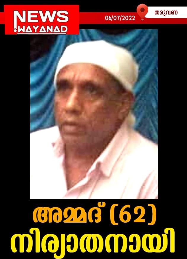 News Wayanad അമ്മദ് (62) നിര്യാതനായി July 6, 2022 0 By ന്യൂസ് വയനാട് ബ്യൂറോ തരുവണ: പരിയാരമുക്ക് കെ.കെ.അമ്മദ് (കെ.കെ. മമ്മൂട്ടി 62) നിര്യാതനായി.ഭാര്യ: ഫാത്തിമ. മക്കള്: സുഹൈറ, സാജിദ, താഹിറ, മൈമൂന, ഉമൈമത്ത്. മരുമക്കള്: സമദ്, സിദ്ദീഖ്, സുനീര്, അഷ്കര്, ഇയാസ്. Post navigation Previous: മാനന്തവാടി പുഴയിലെ തലയില്ലാത്ത മൃതദേഹം; തൂങ്ങി മരിച്ച പുരുഷൻ്റെതാണന്ന് നിഗമനംNext: മാനന്തവാടി മണ്ഡലത്തിൽ വിതരണം ചെയ്തത് 629 പട്ടയങ്ങൾ Also read News Wayanad സുസ്ഥിരത പദ്ധതി വിശദീകരണ യോഗ൦ സംഘടിപ്പിച്ചു April 25, 2026 0 News Wayanad പച്ചക്കറി കച്ചവടത്തിന്റെ മറവില് ലഹരി വില്പ്പന; മാനന്തവാടി സ്വദേശികളുൾപ്പെട്ട മൂന്നംഗ സംഘത്തിൽ നിന്ന് കണ്ടെടുത്തത് 8000 പാക്കറ്റ് ഹാന്സ് April 25, 2026 0 News Wayanad കൽപ്പറ്റ നഗരസഭയും സിഡിഎസും ചേർന്ന് നൂറുദിന ക്ഷയ രോഗ നിർമ്മാർജന ക്യാമ്പയിൻ സംഘടിപ്പിച്ചു April 25, 2026 0 Leave a ReplyDefault Comments (0)Facebook Comments Leave a Reply Cancel replyYour email address will not be published. Required fields are marked *Comment * Name * Email * Website