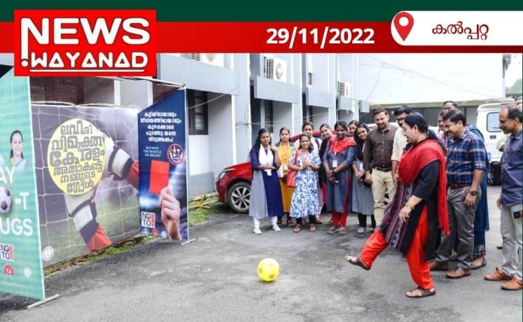 കൽപ്പറ്റ : സംസ്ഥാന സര്‍ക്കാരിന്റെ ''നോ ടു ഡ്രഗ്‌സ്'' രണ്ടാം ഘട്ട ക്യാമ്പയിന്‍ രണ്ട് കോടി ഗോള്‍ ചലഞ്ചിന്റെ ഭാഗമായി ആരോഗ്യവകുപ്പ് കല്‍പ്പറ്റ സിവില്‍ സ്റ്റേഷനില്‍ ഒരുക്കിയ ഗോള്‍പോസ്റ്റില്‍ ജില്ലാ കളക്ടര്‍ എ. ഗീത ആദ്യഗോളടിച്ച് ഉദ്ഘാടനം ചെയ്തു. ''ലഹരി വിമുക്ത കേരളം'' ക്യാമ്പയിന്റെ ഭാഗമായാണ് ആരോഗ്യ വകുപ്പിന്റെ നേതൃത്വത്തില്‍ സിവില്‍സ്റ്റേഷനില്‍ ഗോള്‍ ചലഞ്ച് നടത്തിയത്. ''നോ ടു ഡ്രഗ്‌സ്'' ക്യാമ്പയിനിന്റെ ഭാഗമായി സെല്‍ഫി കോര്‍ണറും ഒരുക്കിയിരുന്നു. ആരോഗ്യവകുപ്പിന്റെ നേതൃത്വത്തില്‍ ജില്ലയില്‍ വിവിധയിടങ്ങളില്‍ ഗോള്‍ ചലഞ്ചും ബോധവല്‍ക്കരണ പരിപാടികളും സംഘടിപ്പിക്കും. എ.ഡി.എം എന്‍.ഐ ഷാജു, ഡെപ്യൂട്ടി കളക്ടര്‍ കെ. അജീഷ്, ഡെപ്യൂട്ടി ഡി.എം.ഒ ഡോ. പ്രിയ സേനന്‍, ഡി.പി.എം സമീഹ സെയ്തലവി, ജില്ലാ മാസ്സ് മീഡിയ ഓഫീസര്‍ ഹംസ ഇസ്മാലി, എന്‍.എച്ച്.എം ജൂനിയര്‍ കണ്‍സള്‍ട്ടന്റ് കെ.സി നിജില്‍, ആരോഗ്യ വകുപ്പ് ജീവനക്കാര്‍, സിവില്‍ സ്റ്റേഷനിലെ ജീവനക്കാര്‍ എന്നിവരും ഗോള്‍ ചലഞ്ചില്‍ പങ്കെടുത്തു.