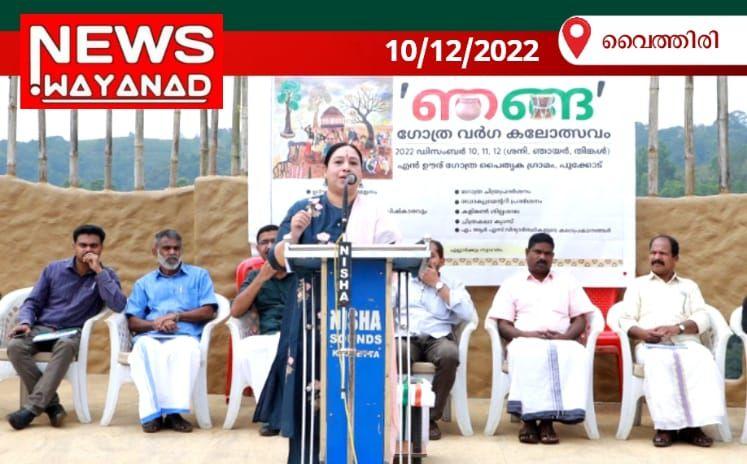 വൈത്തിരി :വയനാടിൻ്റെ തനത് ഗോത്രതാളവും ചുവടുമായി 'ഞങ്ങ' ഗോത്രോത്സവത്തിന് പൂക്കോട് എൻ ഊരിൽ തുടക്കമായി. വയനാടൻ ഗോത്ര ഭൂമിയിലെ ഇന്നലെകൾക്ക് കുട ചൂടിയ പരമ്പരാഗത കലകളുടെ അവതരണം എൻ ഊര് ഗോത്ര ഗ്രാമത്തിനും ആവേശമായി. വിവിധ ദേശങ്ങളിൽ നിന്നെത്തിയ സഞ്ചാരികളും ഗോത്രതാളത്തിനൊപ്പം ചുവടു വെച്ചു. ഇന്ഫര്മേഷന് പബ്ലിക് റിലേഷന്സ് വകുപ്പ് – വയനാട് ജില്ലാ ഇന്ഫര്മേഷന് ഓഫീസിന്റെ നേതൃത്വത്തില് നടക്കുന്ന ത്രിദിന 'ഞങ്ങ' ഗോത്രവര്ഗ കലോത്സവം – ജില്ലാ കളക്ടര് എ.ഗീത ഉദ്ഘാടനം ചെയ്തു. വൈത്തിരി ഗ്രാമപഞ്ചായത്ത് പ്രസിഡന്റ് എം.വി.വിജേഷ് അദ്ധ്യക്ഷത വഹിച്ചു. ജില്ലാ പഞ്ചായത്തംഗം എൻ.സി.പ്രസാദ്, ജില്ലാ ഇൻഫർമേഷൻ ഓഫീസർ കെ.മുഹമ്മദ്, ഡി.ടി.പി.സി. സെക്രട്ടറി കെ.ജി.അജേഷ്, എൻ.ഊര് സൊസൈറ്റി സെക്രട്ടറി മണി മീഞ്ചൽ, അഡീഷണൽ സി.ഇ.ഒ പി.എസ്.ശ്യാം പ്രസാദ്, ഭാരവാഹികളായ വി.ആർ.ബാബു, മുത്തു, കണിയാമ്പറ്റ എം.ആർ.എസ് സൂപ്രണ്ട് കെ. ശ്രീജ കുമാരി, അസി. എഡിറ്റർ ഇ.പി.ജിനീഷ് തുടങ്ങിയവർ സംസാരിച്ചു.