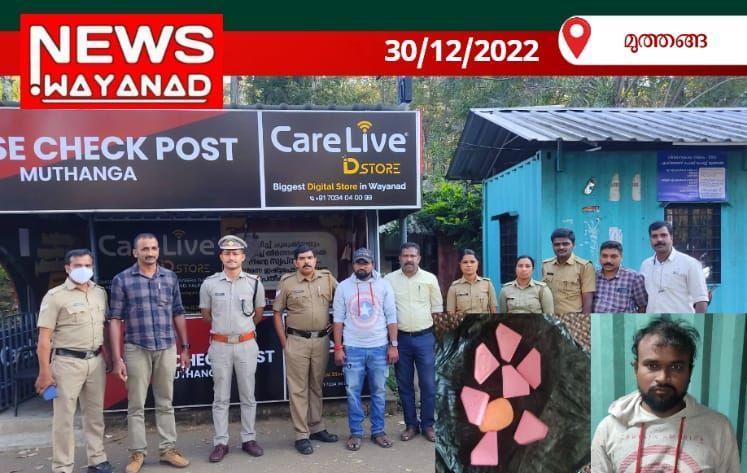 മുത്തങ്ങ : മുത്തങ്ങ എക്സൈസ് ചെക്പോസ്റ്റിൽ അതിമാരക മയക്കുമരുന്നായ എക്സ്റ്റസി പിൽസ് പിടികൂടി. മുത്തങ്ങ എക്സൈസ് ചെക്ക് പോസ്റ്റിൽ വച്ച് എക്സൈസ് ഇൻറലിജൻസ് ടീമിനൊപ്പം നടത്തിയ വാഹന പരിശോധനയിൽ 3.44 ഗ്രാം എക്സ്റ്റൻസി പിൽസ് ഉം 5 ഗ്രാം കഞ്ചാവും കൈവശം വച്ച കുറ്റത്തിന് ആന്ധ്ര പ്രദേശ് സ്വദേശിയായ വീര റെഡ്ഡി( 26) എന്നയാളെ എക്സൈസ് സംഘം അറസ്റ്റ് ചെയ്തു. ഈ മയക്ക് മരുന്ന് മോളി എന്നും അറിയപ്പെടുന്നു. 0.5 ഗ്രാം പോലും കൈവശം വയ്ക്കുന്നത് പത്തുവർഷം തടവ് ശിക്ഷ കിട്ടാവുന്ന കുറ്റമാണ്. പാർട്ടിയിൽ എക്സൈസ് സർക്കിൾ ഇൻസ്പെക്ടർ ഷറഫുദ്ദീൻ. ടി എക്സൈസ് ഇൻസ്പെക്ടർ സുനിൽ .എം.കെ പ്രിവന്റ്റ്റീവ് ഓഫീസർമാരായ അനിൽകുമാർ.ജി പ്രഭാകരൻ പി.കെ, അജീഷ് ടി.ബി, സിവിൽ എക്സൈസ് ഓഫീസർമാരായ ബാലകൃഷ്ണൻ എം.കെ ശ്രീജ മോൾ അനിത എം എന്നിവർ പങ്കെടുത്തു.