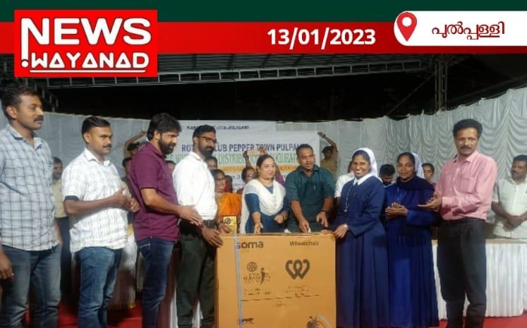 പുൽപ്പള്ളി :റോട്ടറി ക്ലബ്ബ് പെപ്പർ ടൗൺ പുൽപ്പള്ളിയുടെ സമ്പൂർണ്ണ വീൽചെയർ വിതരണ പദ്ധതി ഉദ്ഘാടനം വയനാട് ജില്ലാ കളക്ടർ എ ഗീത ഐ. എ.എസ്സ് നിർവ്വഹിച്ചു. പുൽപ്പള്ളി മുള്ളൻകൊല്ലി പഞ്ചായത്തുകളിലെ നിർധനരായ മുഴുവൻ ആളുകൾക്കും വീൽചെയർ വിതരണം ചെയ്യുന്ന പദ്ധതിയുടെ ആദ്യ ഘട്ടം മുള്ളൻകൊല്ലി പഞ്ചയത്തിലെ അറുപതു കവലയിൽ വച്ചു നടത്തി.
