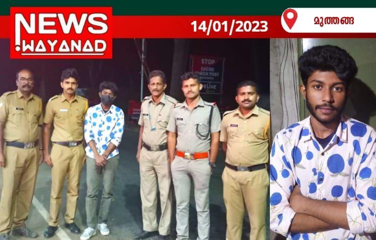 മുത്തങ്ങ എക്സൈസ് ചെക്ക്പോസ്റ്റിൽ വൻ ലഹരി വേട്ട : യുവാവ് അറസ്റ്റിൽ